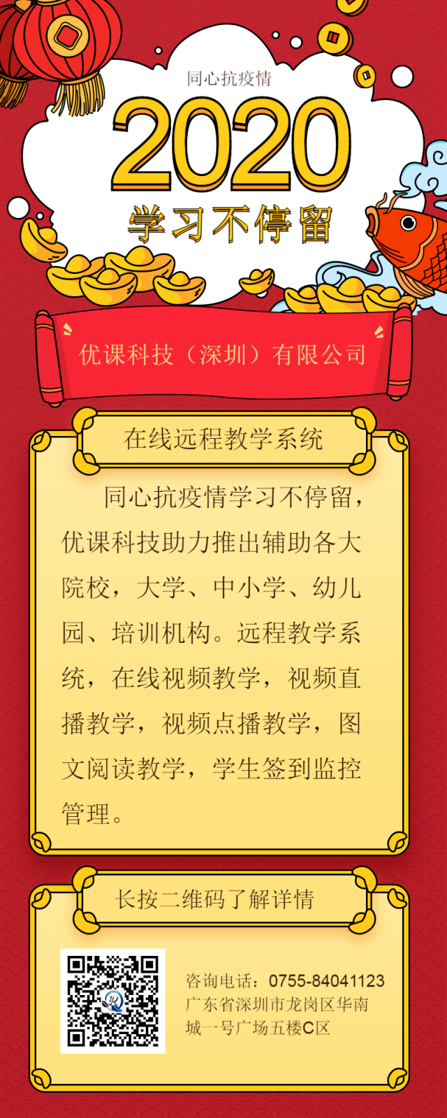 同心抗疫情學(xué)習(xí)不停留,優(yōu)課科技助力推出輔助各大院校,大學(xué)、中小學(xué)、幼兒園、培訓(xùn)機構(gòu)。遠程教學(xué)系統(tǒng),在線視頻教學(xué),…